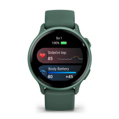 • informace o zdraví a kondici - funkce Body Battery sleduje poměr mezi zátěží a regenerací vašeho organismu